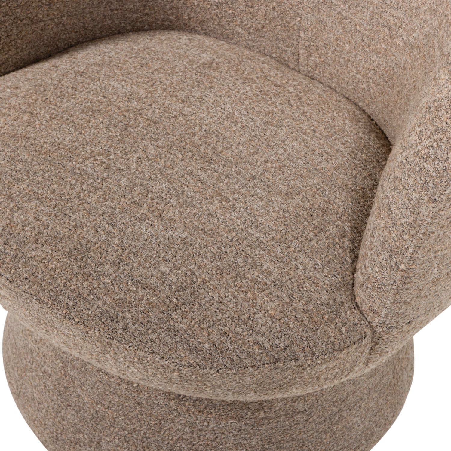 Shuffle besisukantis fotelis išsiskiria minkšta estetika ir jaukia išvaizda. Sėdimoji dalis ir pagrindas kartu suformuoja subtilią smėlio laikrodžio formą, o visas fotelis aptrauktas stambaus pynimo audiniu su netolygiu raštu, kuris gražiai atspindi šviesą ir suteikia prabangos pojūtį. Besisukanti bazė leidžia lengvai pasisukti bet kuria kryptimi ir užtikrina komfortą kasdieniam naudojimui.